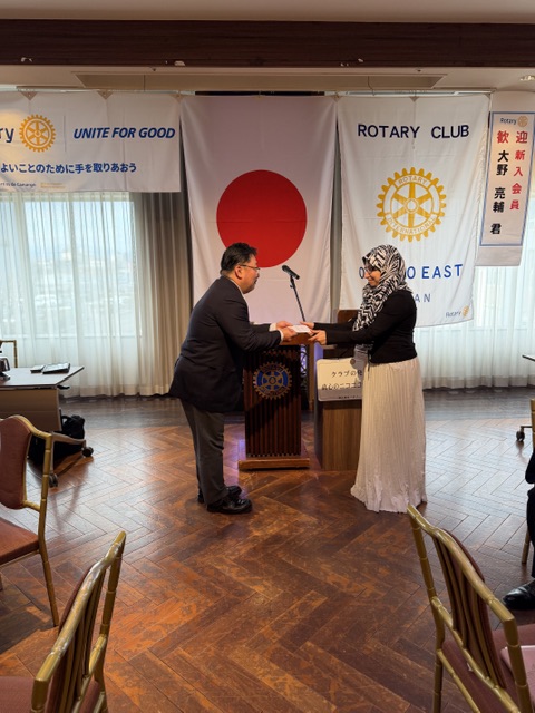 改めまして、こんにちは。今ご紹介いただきました。 大野と申します。 これから皆さんと一緒に、東ロータリークラブを盛り上げていけるように頑張っていきたいと思いますので、よろしくお願いいたします。