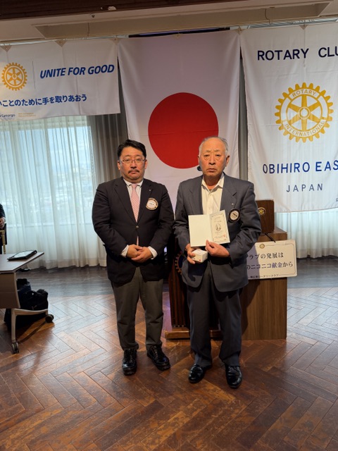 10月26日にご逝去された板倉利男元会長のご家族より長きにわたり、帯広東ロータリークラブにお世話になりましたということで、志を頂戴いたしました。最後まで細やかなお心遣いをいただいたことに感謝申し上げます。