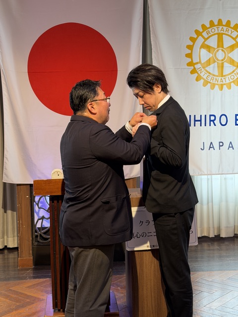 加藤会長より歓迎の言葉とロータリーバッジの贈呈をお願いいたします。